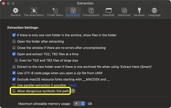 By default, Bandizip view symbolic links that point to files outside the archive as a security treat and does not create them.